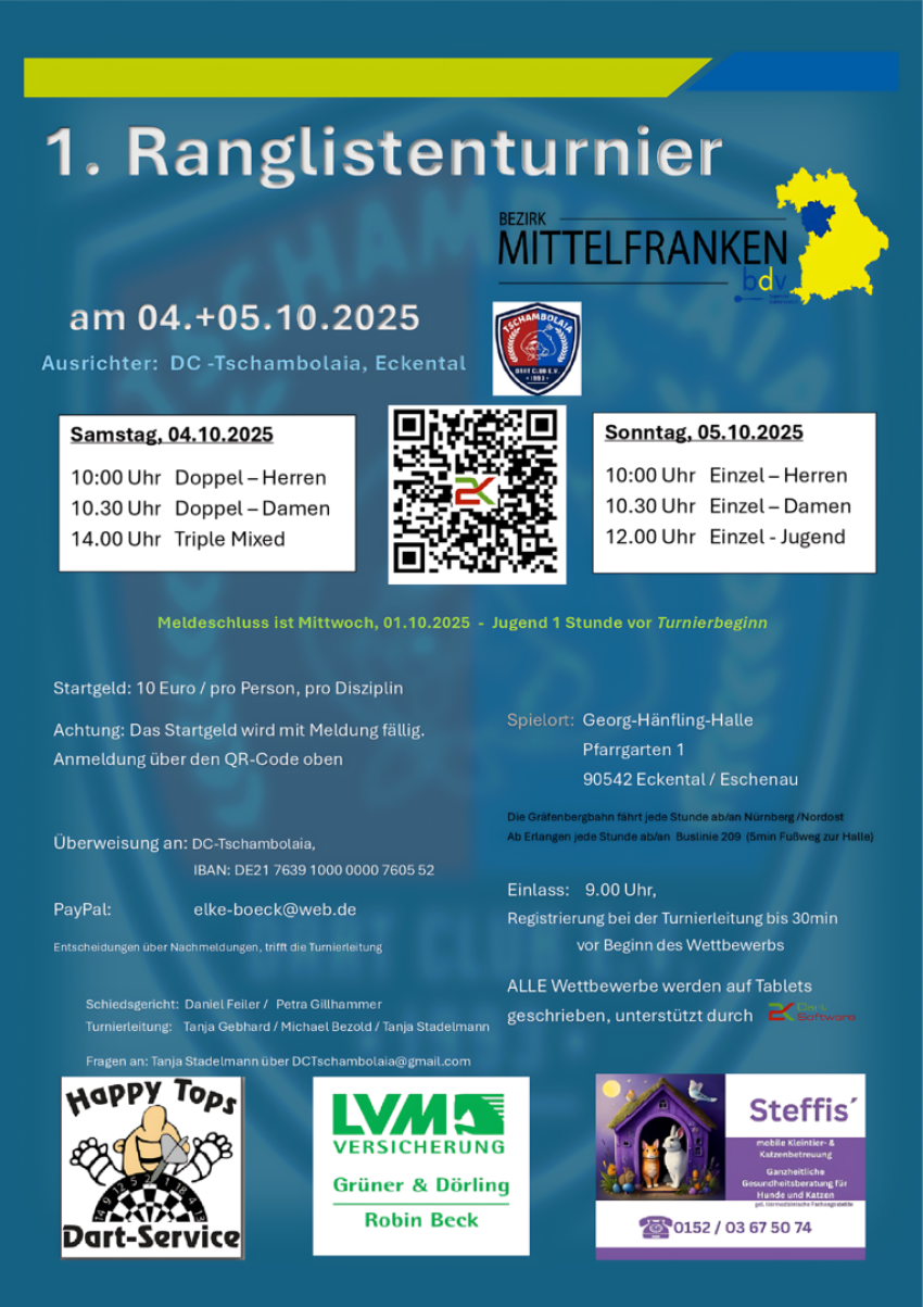 Bilder und Links mit freundlicher Genehmigung des Mittel-und Oberfränkischen, Bayerischen- und Deutschen Dartverbands